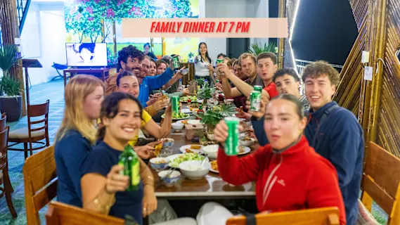 Join our traditional Vietnamese family dinner every night at 7pm and get to talk and socialize with people from all around the world. You can also join fun vietnamese lessons after dinner. Enjoy it better with a drink thanks to the Happy Hour from 7 to 8pm (buy 3 for the price of 2)